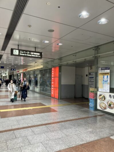 きしめん屋さんを通り過ぎるとすぐ上に地下鉄桜通線改札行きエレベーターの案内表示があるので、このエレベーターに乗って桜通線改札まで行きます。